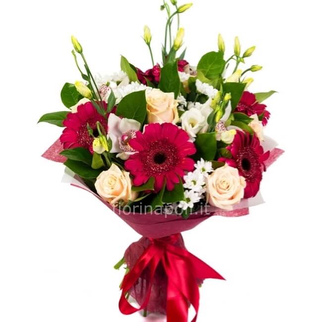 Elegante bouquet con lisianthus e gerbere